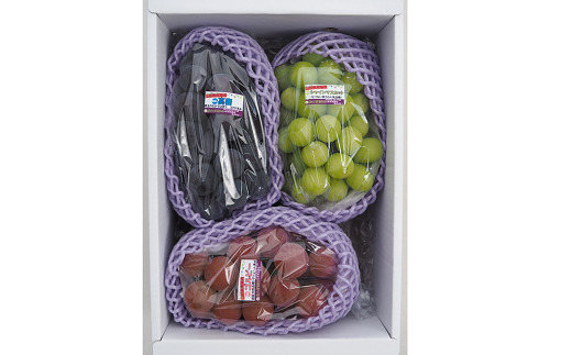 ※容量を「3品種(各1房 計3房)」と設定しておりますが、ぶどうの生育の都合上、3品種 各1房でのご用意が難しくなる場合もございます。