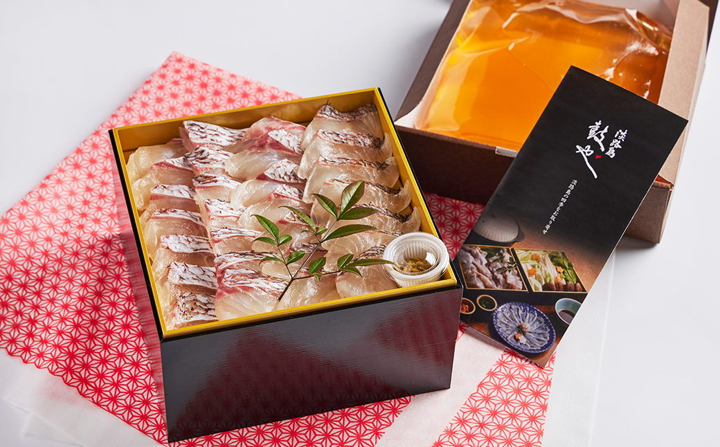 鼓や特製の上品なお出し汁と島野菜を合わせて食べる鯛すき鍋は特別な日にふさわしいめでたいお鍋です。