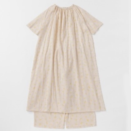 ガーゼの柔らかい肌さわりをいかし、赤ちゃんの肌着から大人の方のナイティまで、ゆとりあるラインで体をやわらかくつつみこむデザインにしています。
