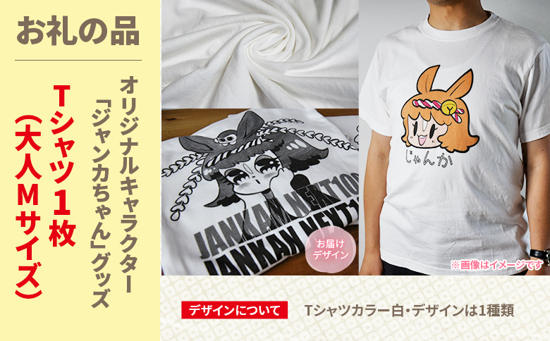 ・Tシャツ1枚(カラー:白、デザイン1種、大人Mサイズ)