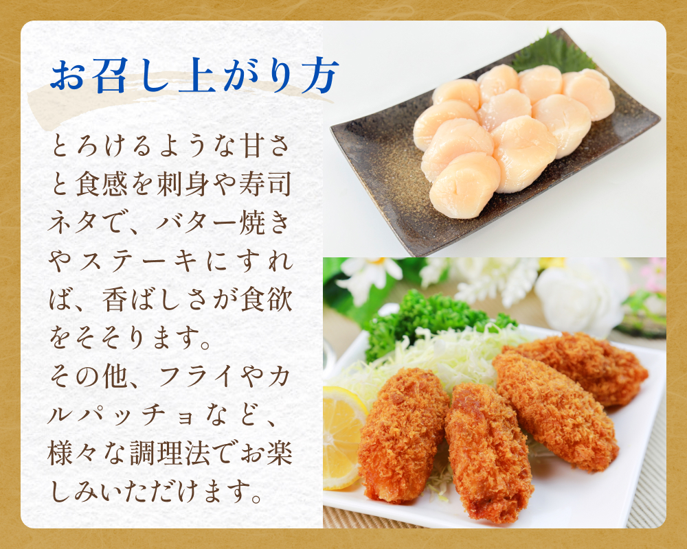 まるで獲れたてのような、とろける甘さと肉厚な食感をお楽しみください。