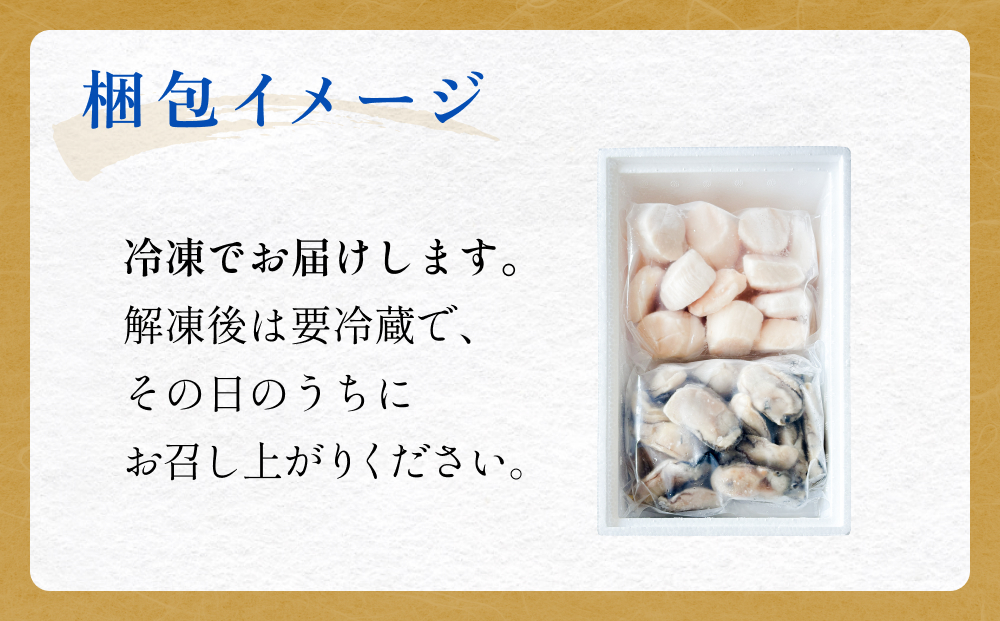 ホタテ:製造日から2年、むき牡蠣:製造日から1年