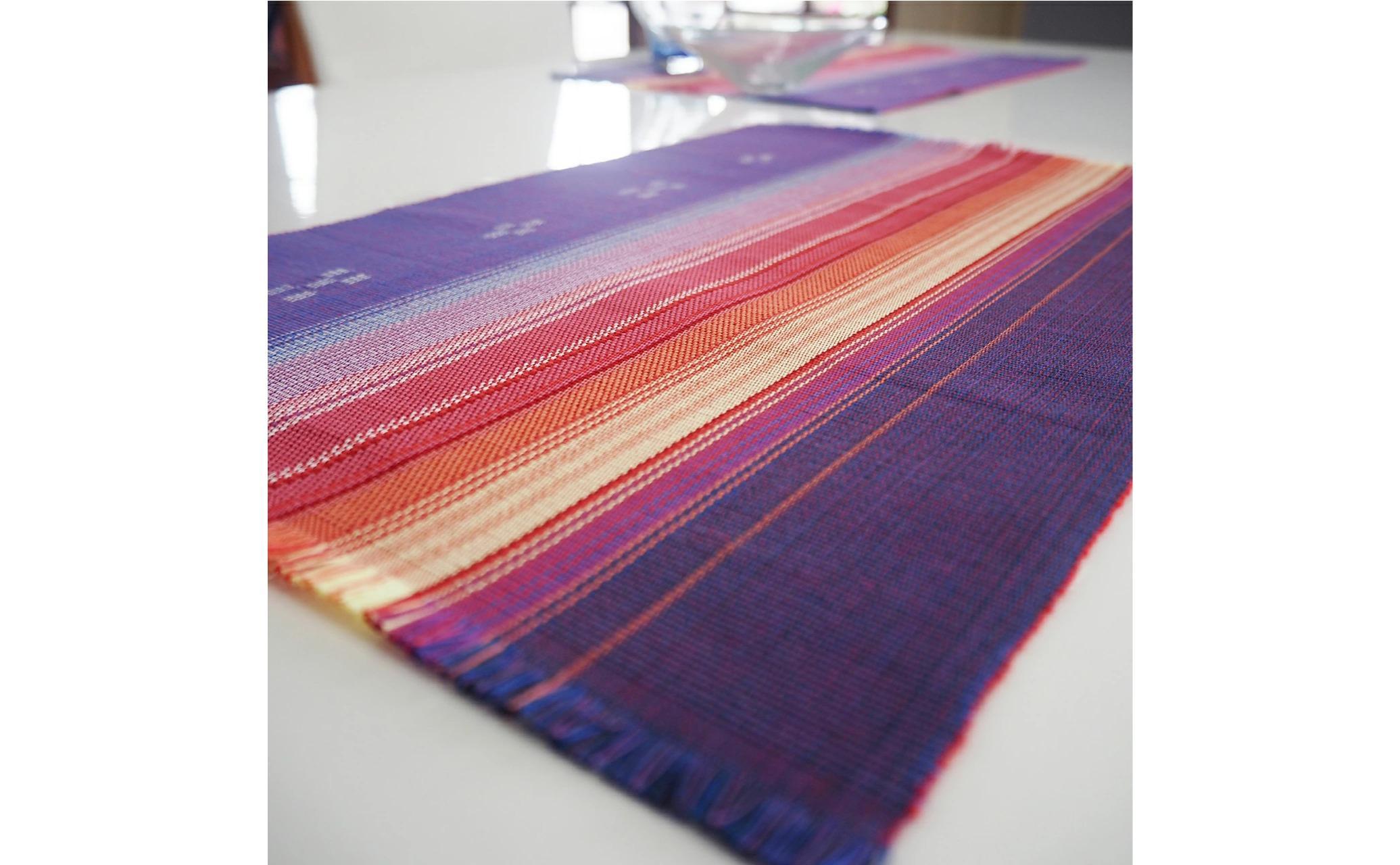 伝統工芸品「八重山みんさー織」は、職人たちによって約30もの工程をほぼ手作業にて行い、丁寧に織り上げた生地です。 みんさー織の“五つと四つ”の絣柄には「いつの世までも末永く・・・」の想いが込められています。