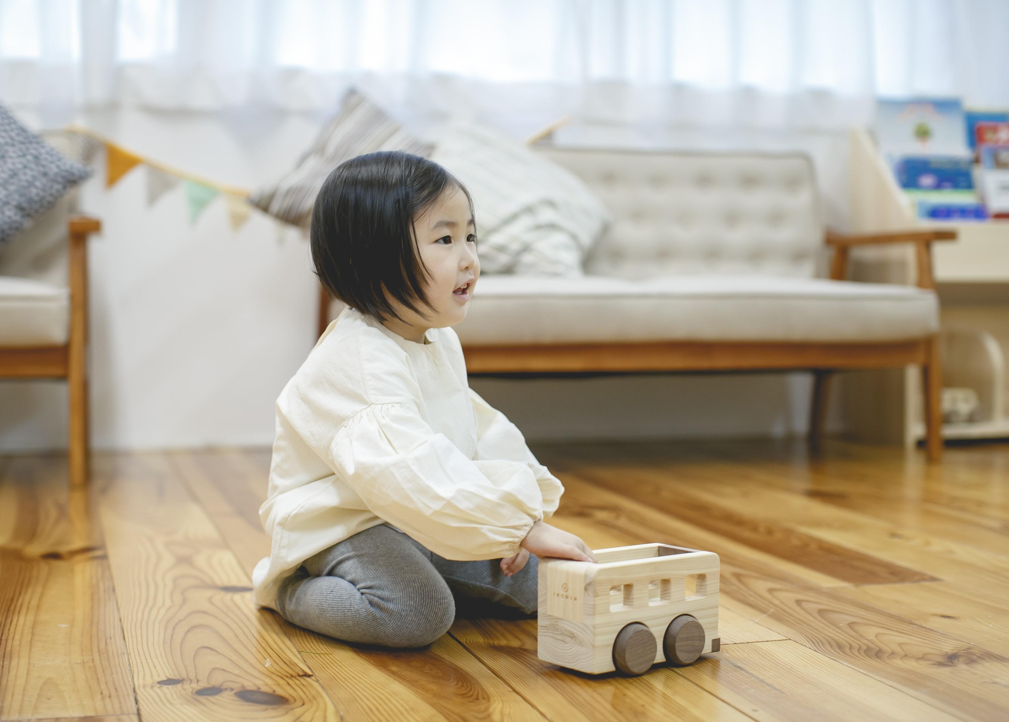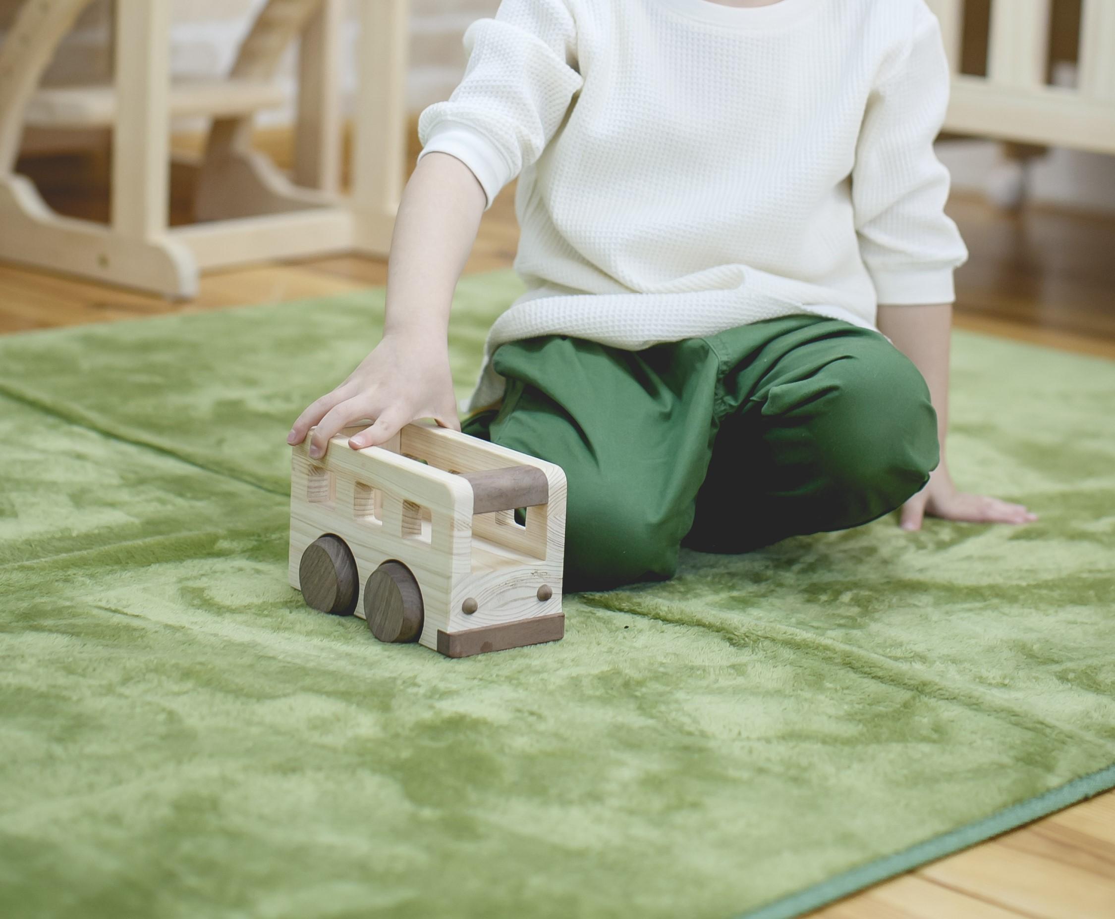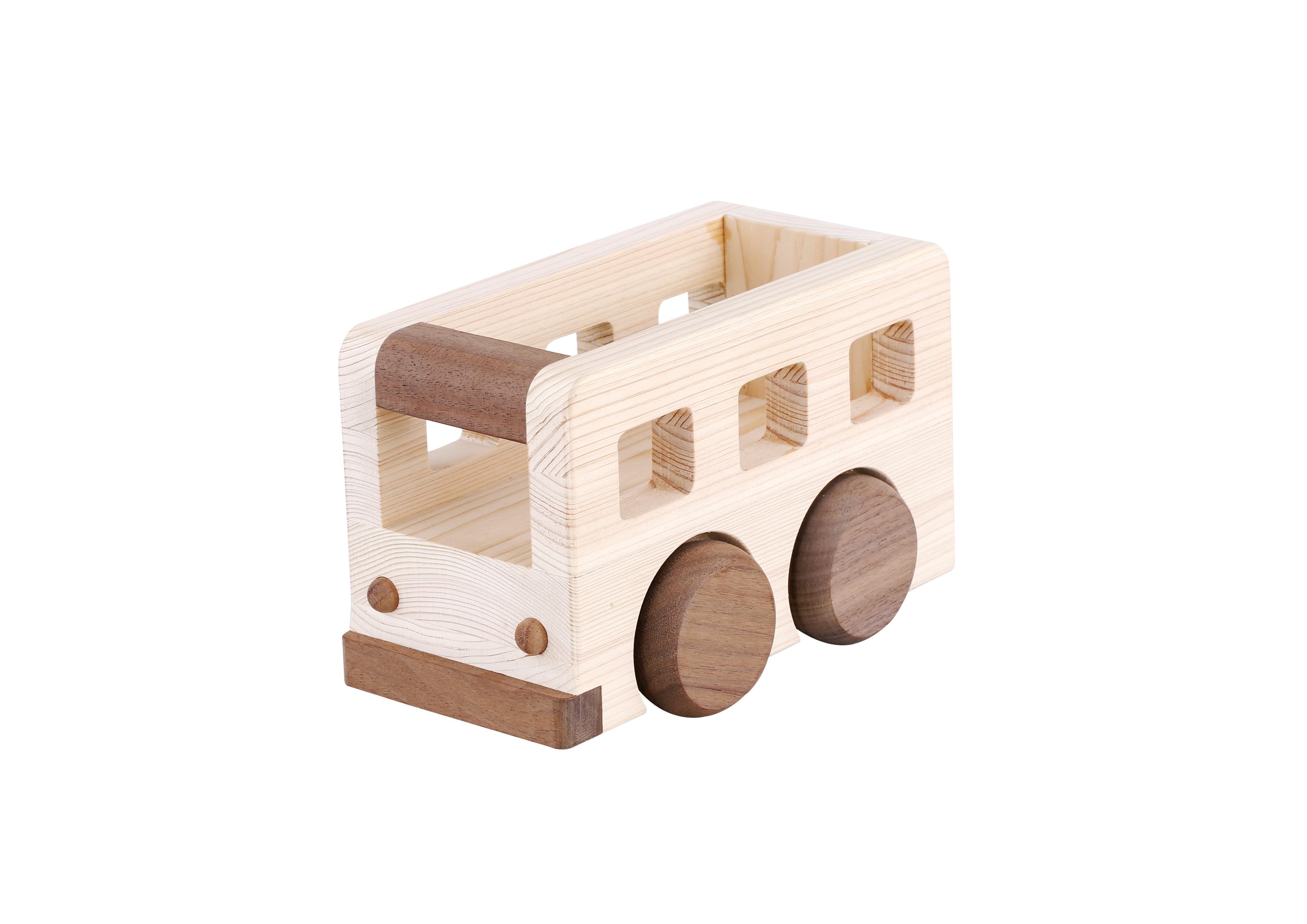 荷台にお気に入りのおもちゃなどをたっぷり積み込めるオルゴールバス。
