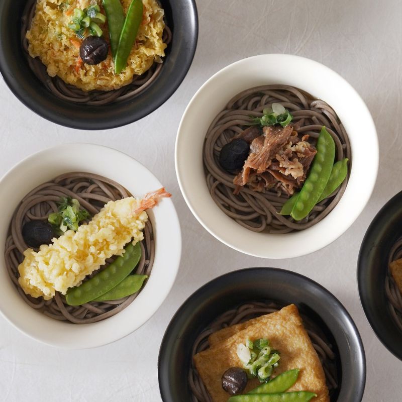熱い汁でもコシが抜けない舌ざわりなめらかな手延べそばに素材を活かした具材を加えた手軽な冷凍調理食品にしました。