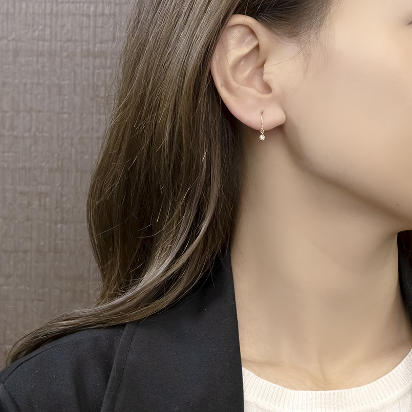 耳元で高貴に輝くダイヤモンドピアス