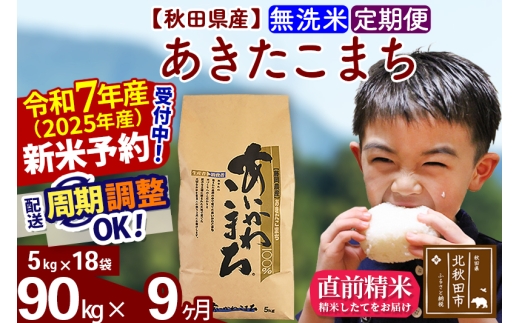※令和7年産 新米予約※《定期便9ヶ月》秋田県産 あきたこまち 90kg【無洗米】(5kg小分け袋) 2025年産 お届け時期選べる お届け周期調整可能 隔月に調整OK お米 藤岡農産