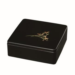 紀州漆器職人が丁寧に仕上げた【6.0寸 一段重箱 総黒 つゆ草】です。