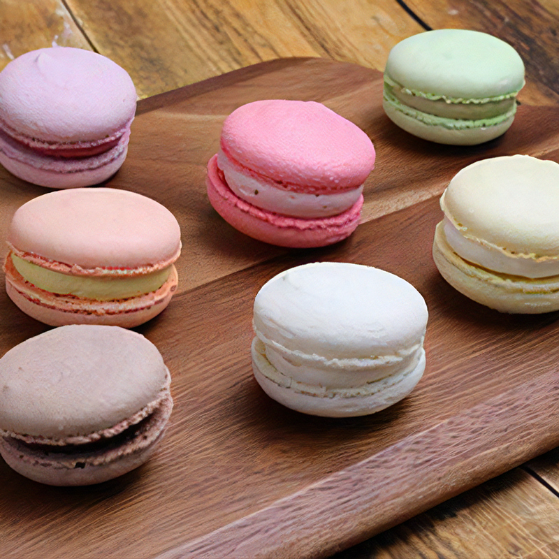 ■原材料:砂糖、アーモンドパウダー、卵、バター、いちごピューレ、カシスピューレ、レモン果汁、チョコレート、生クリーム、ココア、洋酒、天然バニラ、木苺、マンゴーピューレ、パッションピューレ、抹茶、紅茶、バラペースト、コーヒー、食用色素