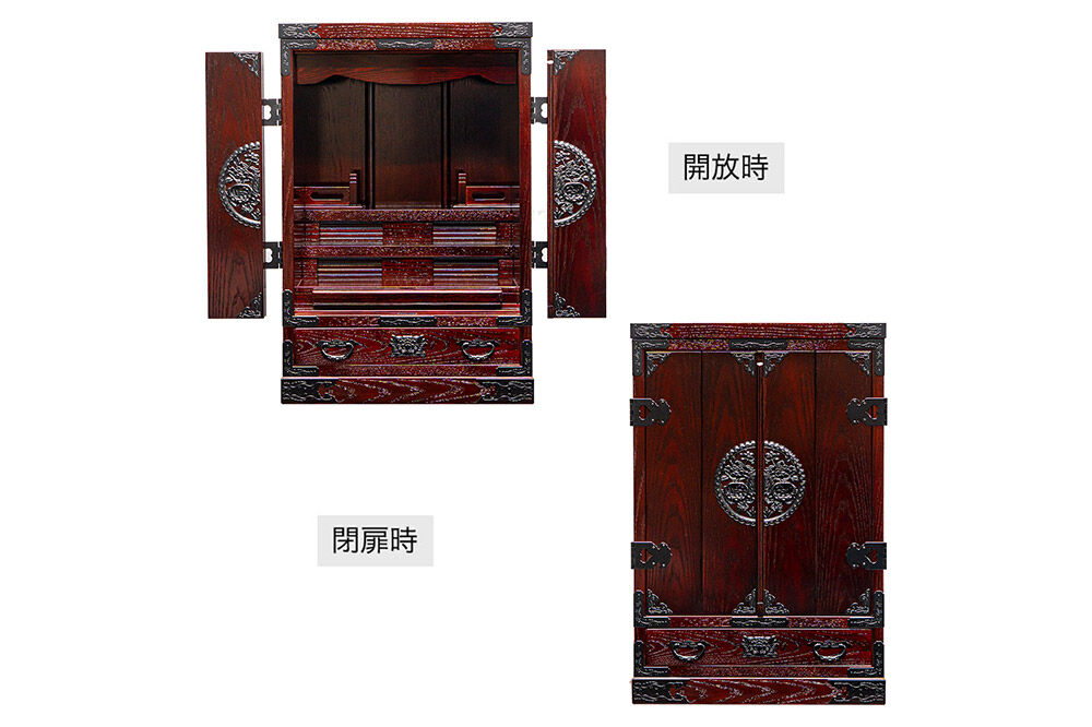 暮らしにいつも寄り添い、ご先祖様を偲ぶご家族の気持ちを大切に考えて仙台箪笥の装飾をさり気なく施した職人たちの思いやりが込められた秀麗な仏壇です。