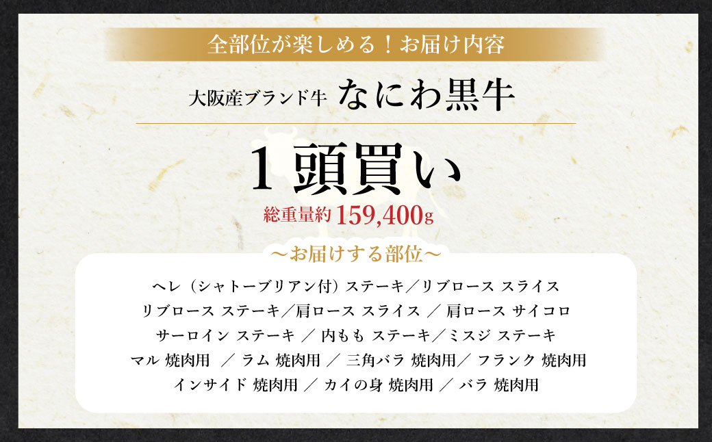 この度は、幻の和牛と言われる「なにわ黒牛」を一頭まるごと買い付けた、とっておきのセットをご用意いたしました。