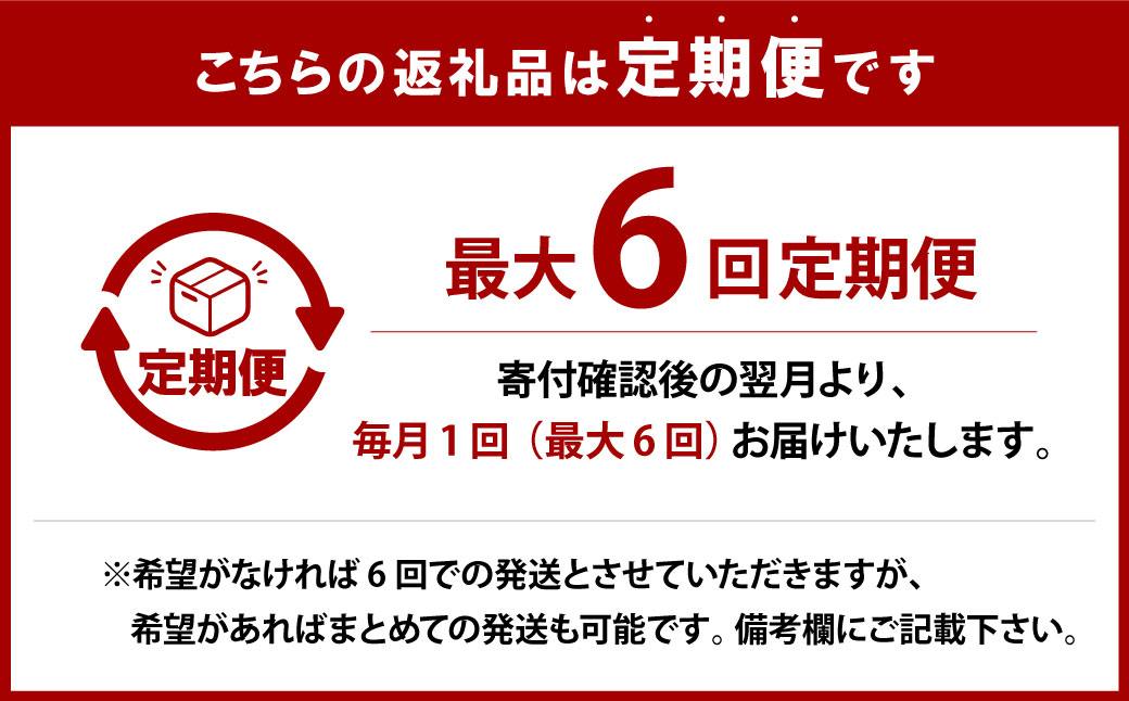 ※希望がなければ6回での発送とさせていただきますが、希望があればまとめての発送も可能です。備考欄にご記載下さい。 - 内容量