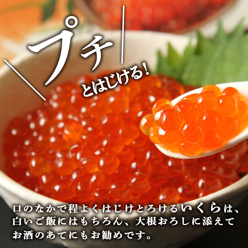 口のなかで程よくはじけとろけるいくらは、白いご飯にはもちろん、大根おろしに添えてお酒のあてにも最適です。