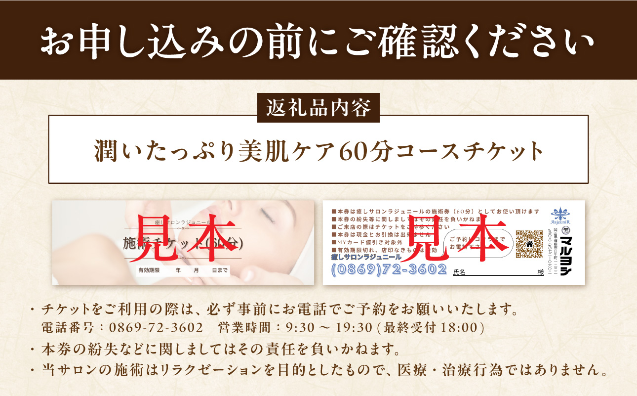 潤いたっぷり♪美肌コース(60分)のチケット1枚