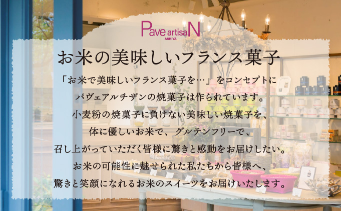 米粉でできているとは思えない、驚くほどしっとりふんわりとした食感のパヴェアルチザンを代表する焼き菓子です。