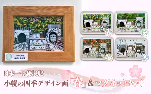<日本一の秘境駅・小幌「春」>額縁入四季デザイン画&四季マグネット4枚セット