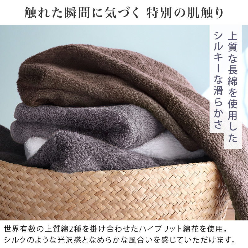 さらに優れた吸水性と耐久性も備えた長くご愛用頂ける上質タオルです。