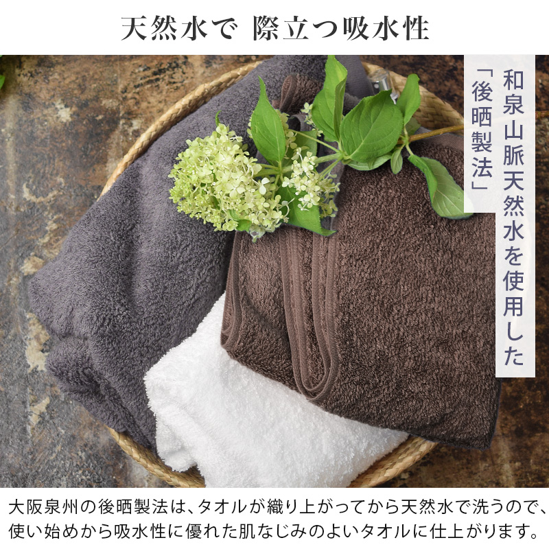 和泉山脈の天然水で晒した大阪泉州こだわりタオルです。