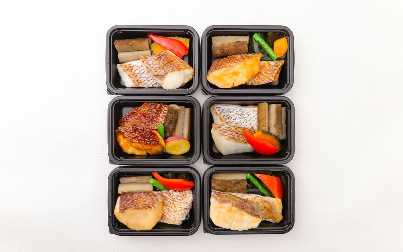 鯛(国産)、味付ごぼう、(淡口醤油、砂糖、濃口醤油、食塩、かつお節エキス)、赤パプリカ、いんげん豆、南瓜、さつま芋、人参、煮魚たれ(醤油、砂糖混合ブドウ糖果糖液糖、水飴、醸造調味料、生姜)、味噌煮たれ(白味噌、醤油、砂糖混合ブドウ糖果糖液糖、水飴、醸造調味料、生姜)、みぞれ煮たれ(大根、醤油、砂糖混合ブドウ糖果糖液糖、水飴、醸造調味料、生姜)、照焼たれ(醤油、砂糖混合ブドウ糖果糖液糖、水飴、醸造調味料、昆布パウダー、くず粉)、西京漬味噌(米味噌、果糖ブドウ糖液糖、発酵調味料、砂糖、酒粕加工品)、調合油、食塩/調味料(アミノ酸等)、ソルビット、カラメル色素、甘味料(カンゾウ)、酸味料、酒精、加工澱粉、乳化剤、酢酸Na、グリシン、保存料(しらこ)、(一部に小麦・大豆・さけを含む)