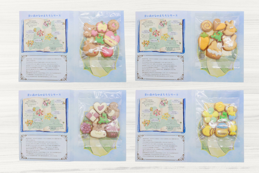 深夜の工房に青森県内のおいしい果物や野菜を届けに来てくれる森のなかまたちをコンセプトに一目で「可愛い」「癒される」と心が暖かくなるアイシングクッキーが誕生しました。