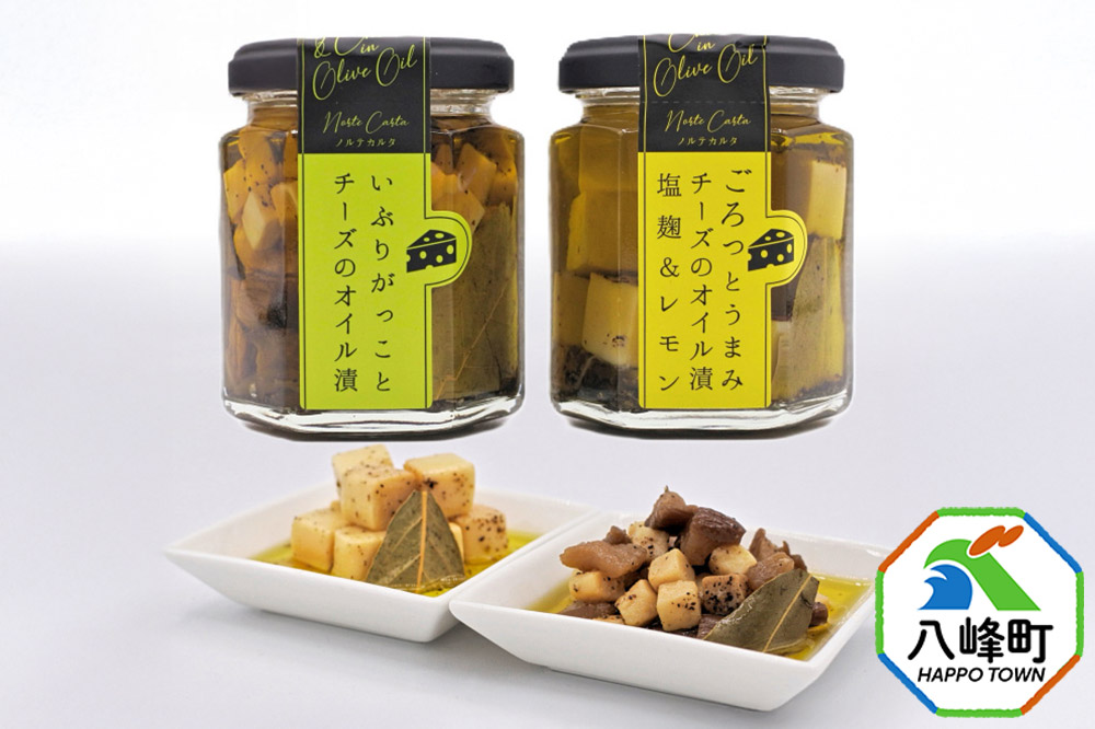 ■原材料:[いぶりがっことチーズのオイル漬]たくあん漬(秋田県製造)、食用オリーブ油、プロセスチーズ、料理酒、しょっつる、塩麹、グラニュー糖、黒胡椒、にんにく、唐辛子、ローリエ/乳化剤、セルロース[塩麹&レモン]プロセスチーズ(国内製造)、食用オリーブ油、塩麹、しょっつる、料理酒、濃縮レモン果汁、にんにく、黒胡椒、バジル、ローリエ/乳化剤、セルロース