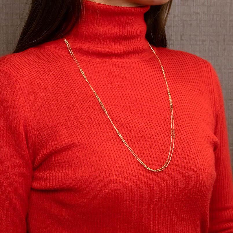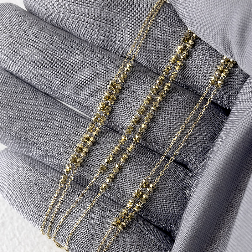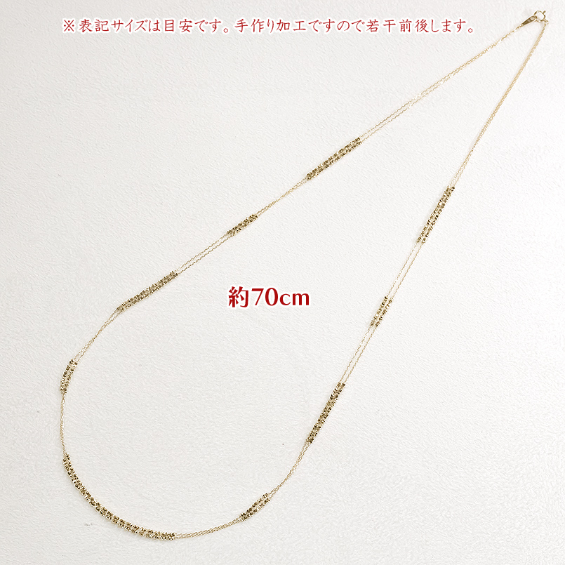 動くたびにきらきらと輝くミラーボールと繊細なアズキチェーンの2連ネックレス