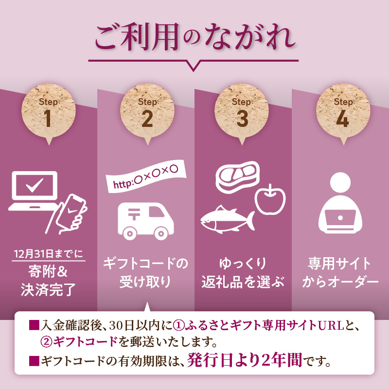 入金確認後、30日以内に専用サイトのURL&ギフトコードをお送りします。