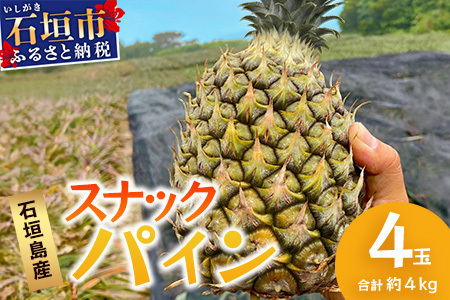 石垣の自然豊かな台地で育った石垣さんちのスナックパインを4玉約4kgお届けいたします!