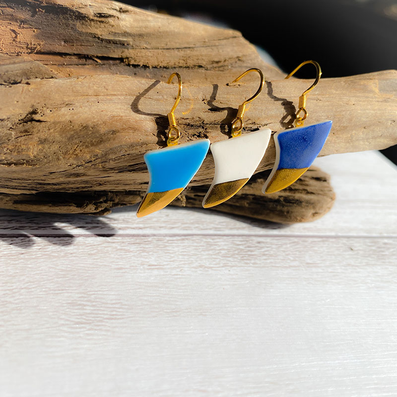 Fin(フィン)は湘南のライフスタイルの象徴のひとつ“サーフボード”のフィンをモチーフにした爽やかなピアスです。