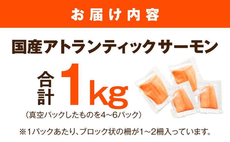 国産サーモン 1kg(真空パックしたものを4-6パック)