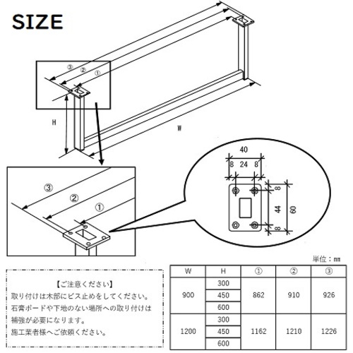 W900×H450:設置サイズ:幅92.6×高さ45×奥行6cm