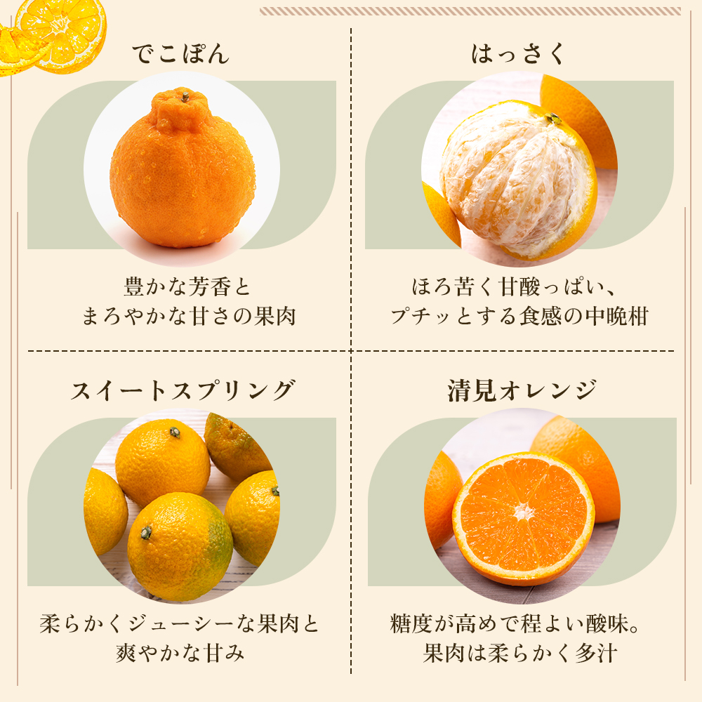 (4月)いちご、キウイ、せとか、デコポン、スイートスプリング、ジューシー柑、清見オレンジ