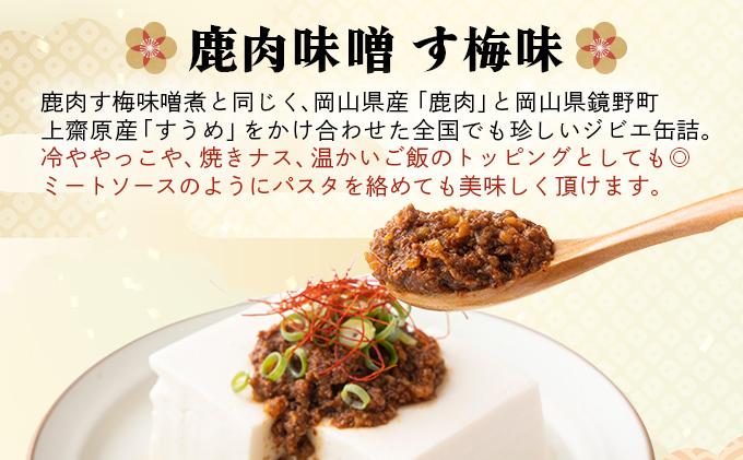 岡山県産「鹿肉」と岡山県鏡野町上齋原産「すうめ」(日本スモモの原種)をかけ合わせた全国でも珍しいジビエ缶詰。