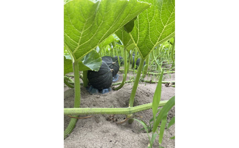 通常のかぼちゃは一つの株に2~4個、多い時は成るだけ成らせて栽培するのですが、ikkaは一株に一つの果実のみ実らせ、要らない実や蔓を丁寧に取り除く栽培方法で育てました。栄養を1つの実にギュッと凝縮させ、複数の実をつけた場合では実現しない美味しさを目指します。さらに通常よりもじっくりと3週間以上熟成させることで、濃い甘みとうまみを引き出します。