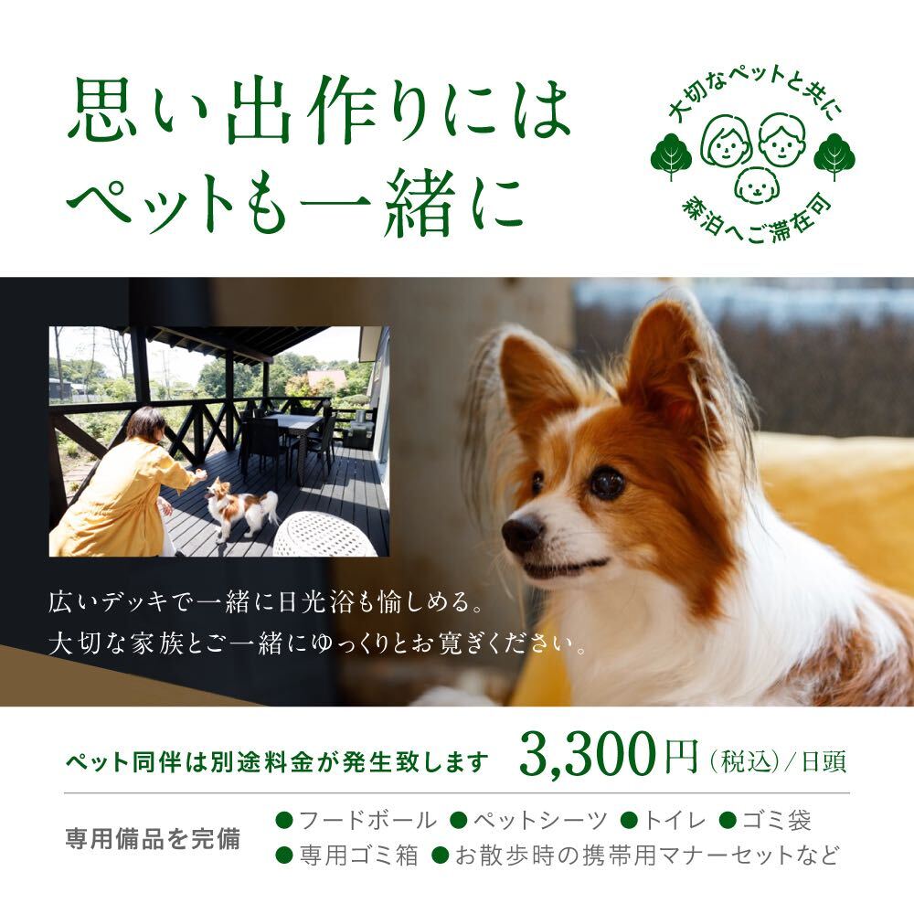 ※ペット同伴については別途料金が発生致します。3,300円(税込)/日頭
