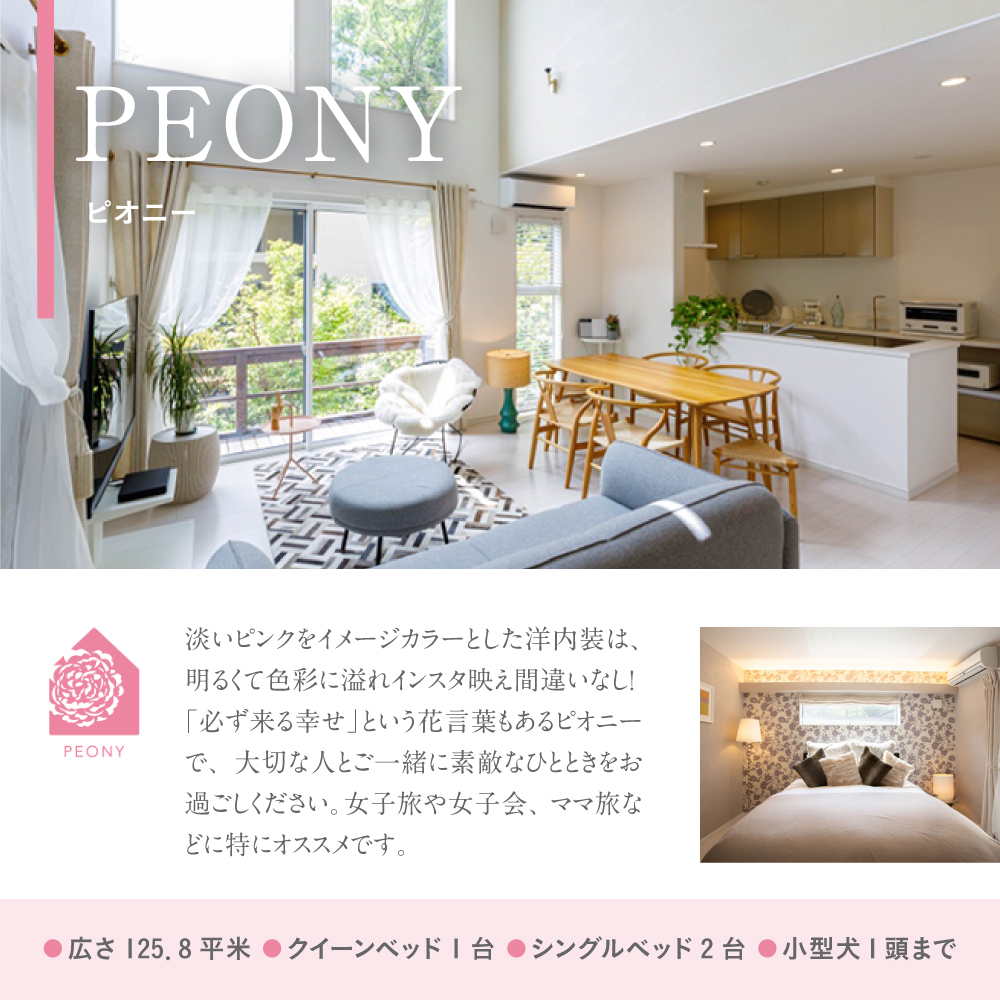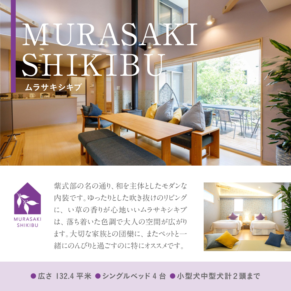 ※ムラサキシキブ棟は小型犬中型犬計2頭まで、ピオニー棟は小型犬1頭まで、コナラ棟は小型犬2頭まで。