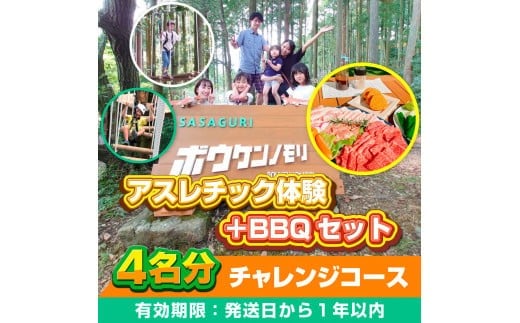アスレチック体験(チャレンジコース)+BBQセット4名分
