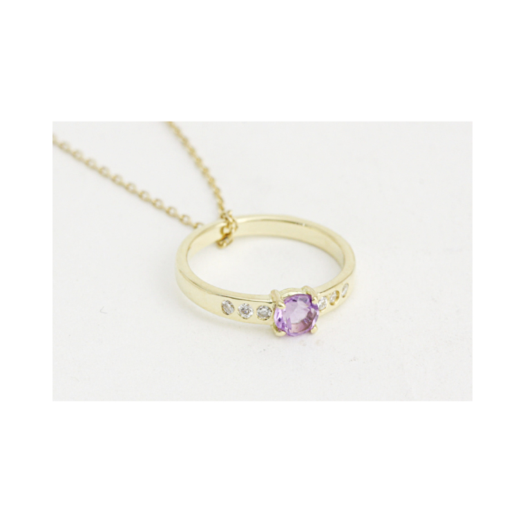 センターストンに3mmの誕生石が、その両枠にダイヤモンドが6石入ります。