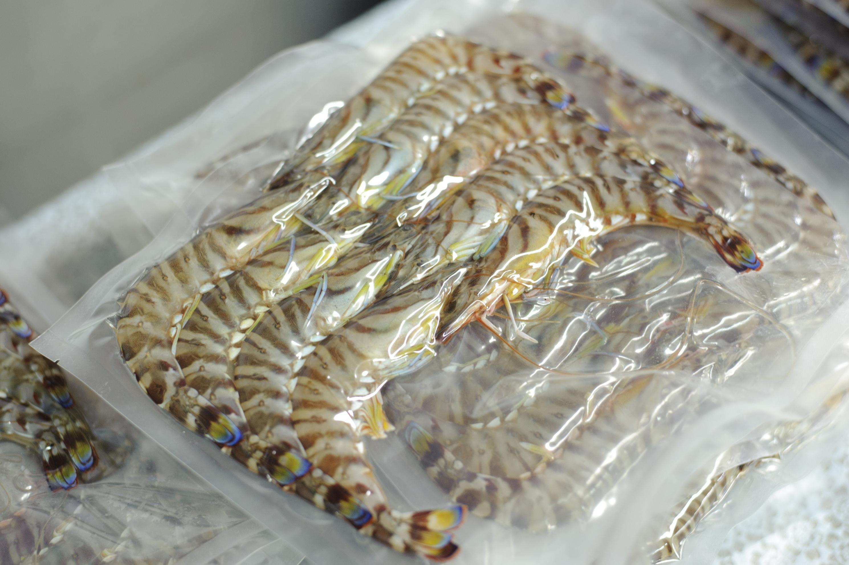 開封して冷凍海老に直接、水を当てる流水解凍後、加熱調理してお召し上がりください。