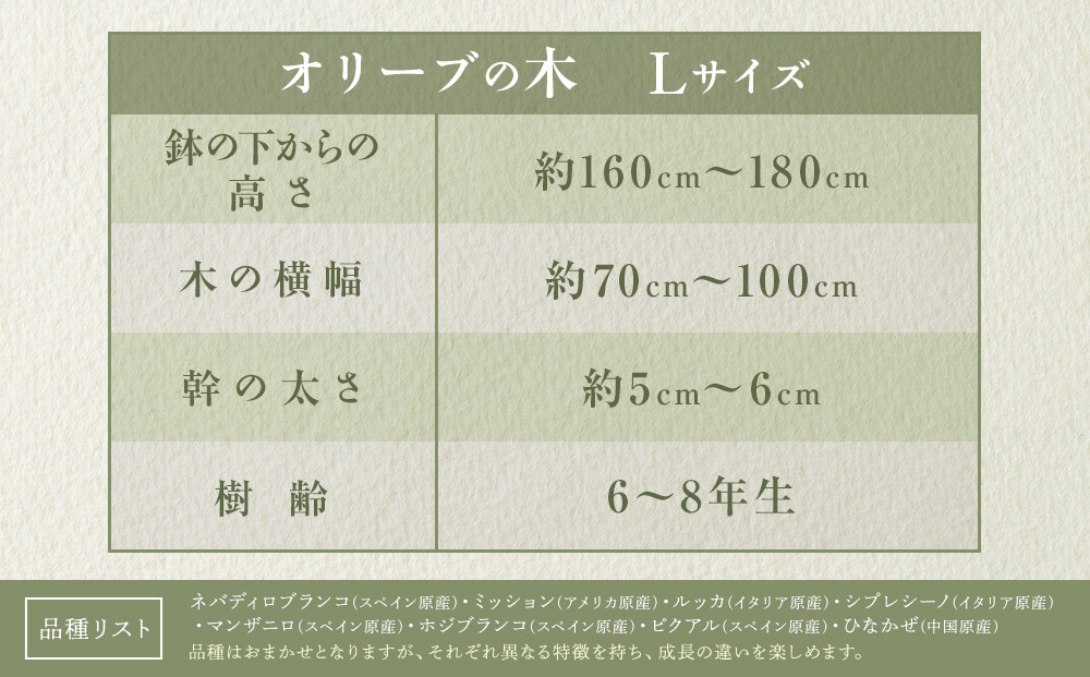 品種の組み合わせはおまかせですが、どれも育てやすく、オリーブの魅力を存分に味わえます。