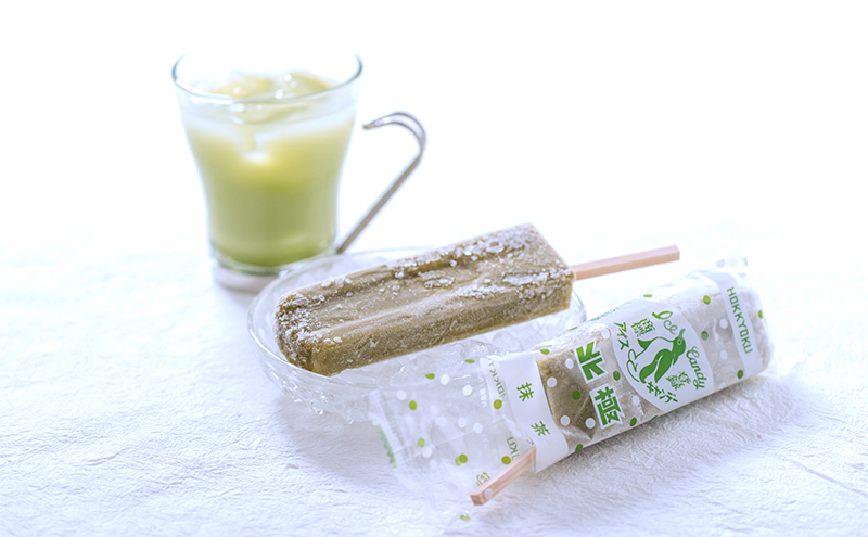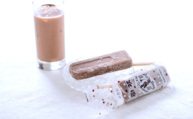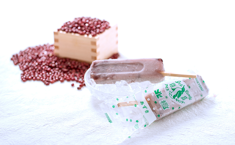 斜めに刺さったお箸(アイスのバー)は奈良吉野の桧を使用し、職人さんに1本1本丁寧に作ってもらっています。