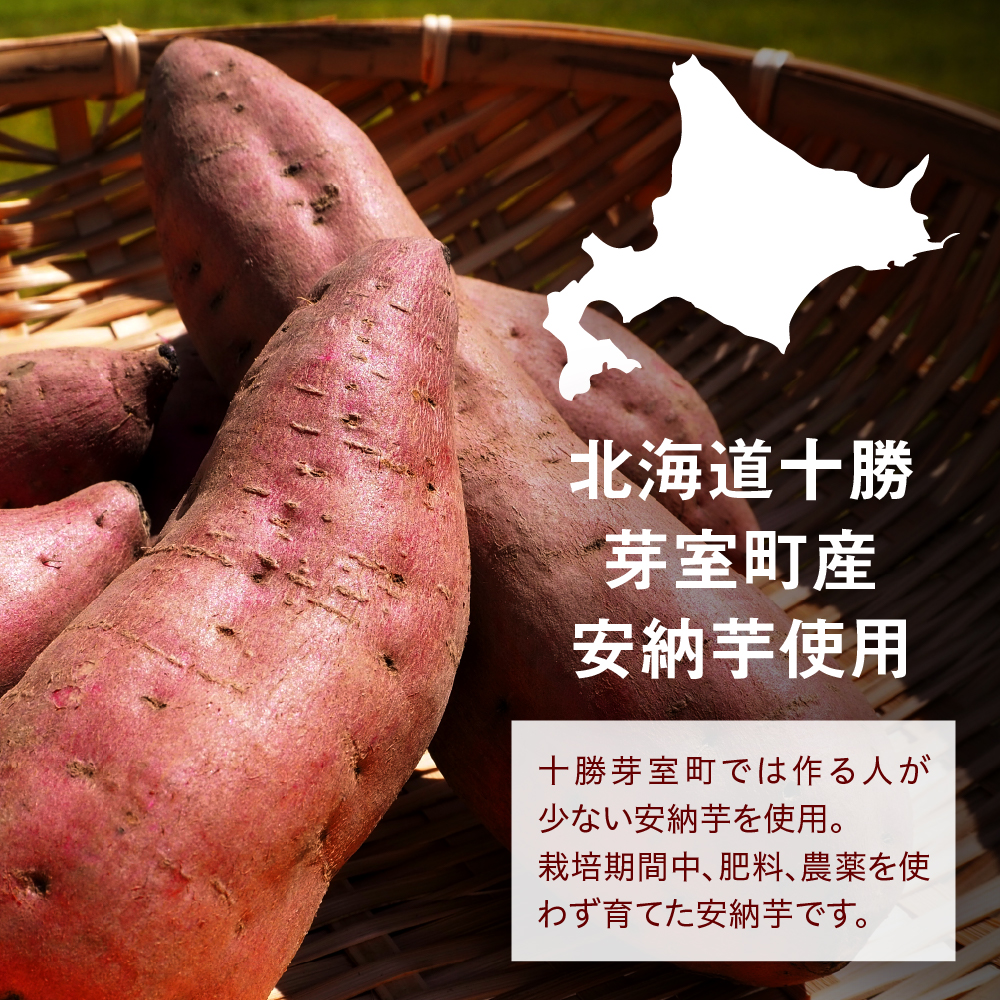 十勝芽室町では作る人が少ない安納芋を使用。肥料、農薬不使用。
