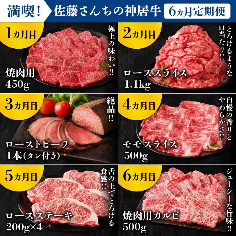 品評会で高い評価を受ける、十勝清水町産ブランド牛「神居牛」を6カ月に渡りお届けいたします。
