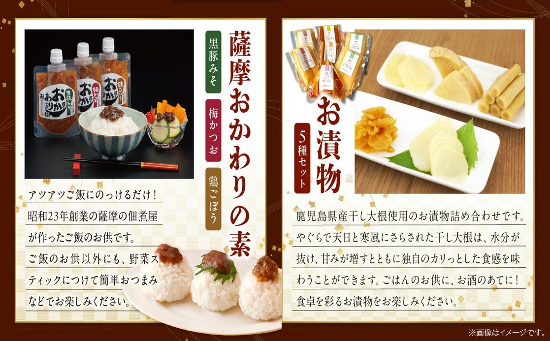 薩摩おかわりの素(鶏ごぼう、梅かつお、黒豚みそ)各100g×2袋