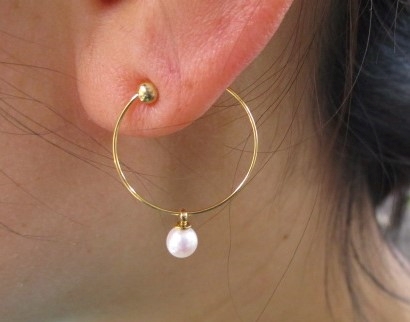 真珠 パール イヤリング フープ ゴールド 金 シンプル 普段使い カジュアル 三重県 志摩市 伊勢 アコヤ おしゃれ かわいい ファッション プレゼント 贈り物 贈答 真珠の里 ベビーパール フープイヤリング