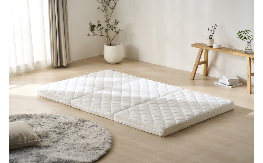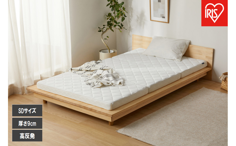 厚さ約9cmの高反発マットレスで、約8cmのエアロキューブ®をニット生地とメッシュ生地で包み込んだリバーシブル仕様です。 冬はあたたかく、夏は通気性に優れ、季節を問わず快適にお使いいただけます。 体圧分散性に優れ、腰や背中への負担を軽減し、寝返りもスムーズにサポートします。 底付き感が少ないため、ベッドの上はもちろん、床に直接敷いても快適です。 三つ折りタイプで収納しやすく、立てて干すことも可能です。 カバーと中材は取り外して洗え、速乾性のある素材でお手入れも簡単。 清潔に保てるため、毎日安心してご使用いただけます。