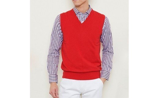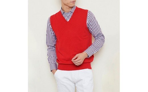 日本製 カシミヤ100% Vベスト 赤 Mサイズ×1