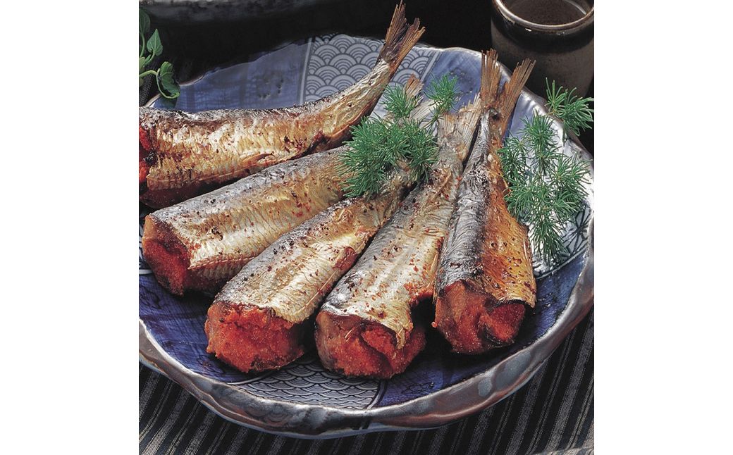 脂ののったイワシ・サバに、明太子をはさんだこだわりの逸品です。