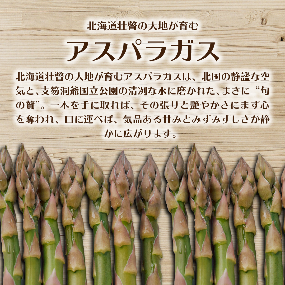北海道壮瞥の大地が育むアスパラガスは、北国の静謐な空気と、支笏洞爺国立公園の清冽な水に磨かれた、まさに“旬の贅”。