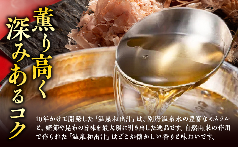 別府の良質な温泉水を使った鰹節と昆布の合わせ出汁です。